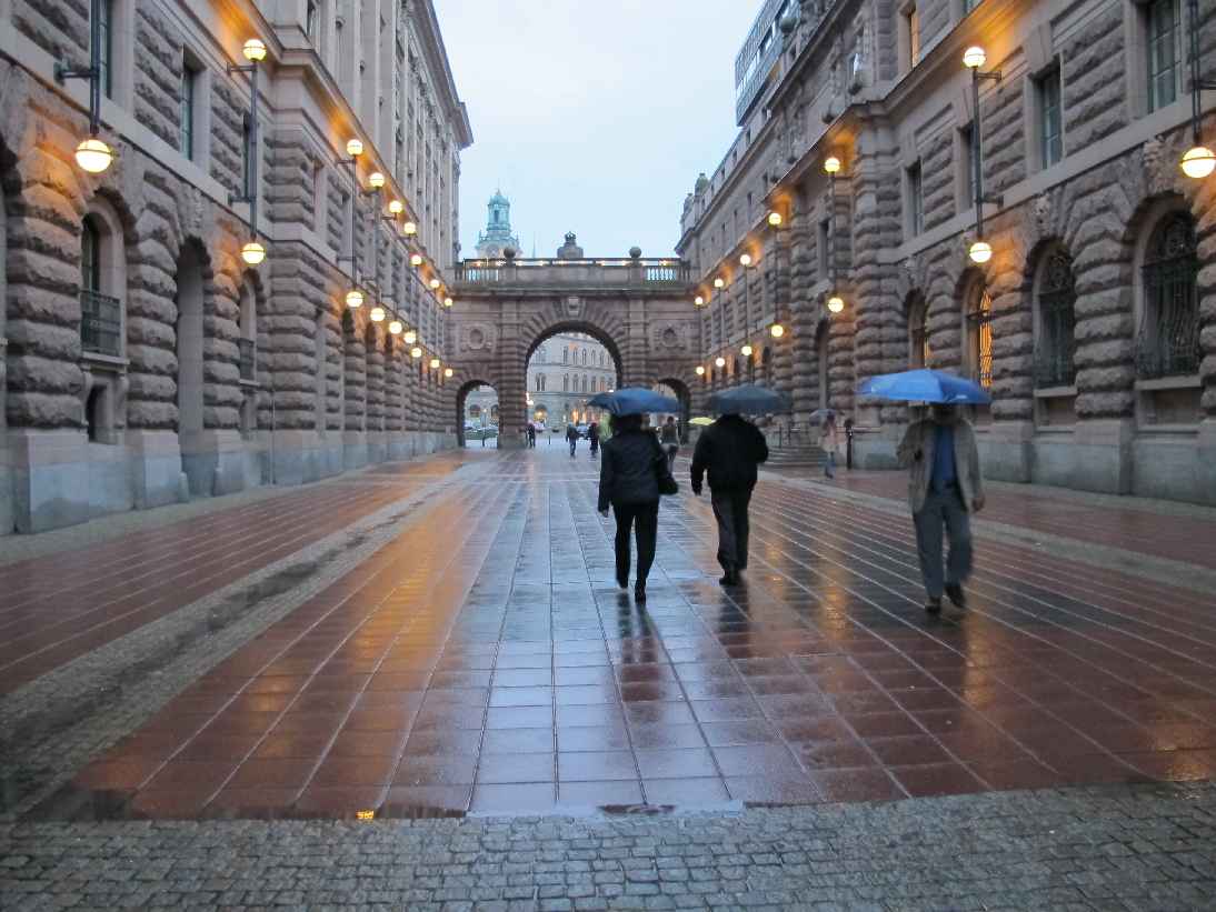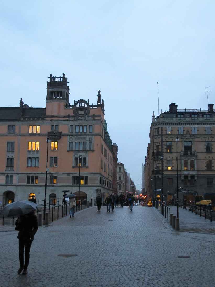 Leider hat es ziemlich geregnet, aber ich bin immerhin abends ein wenig in die Altstadt (Gamla Stan). Das wäre bei Sonnenschein oder zumindest trockenem Wetter bestimmt angenehmer gewesen und ich hätte bestimmt auch mehr Fotos gemacht, hätte ich mir nicht dauernd die Kapuze tiefer ins Gesicht ziehen müssen. Ich habe halt versucht das Beste daraus zu machen…
